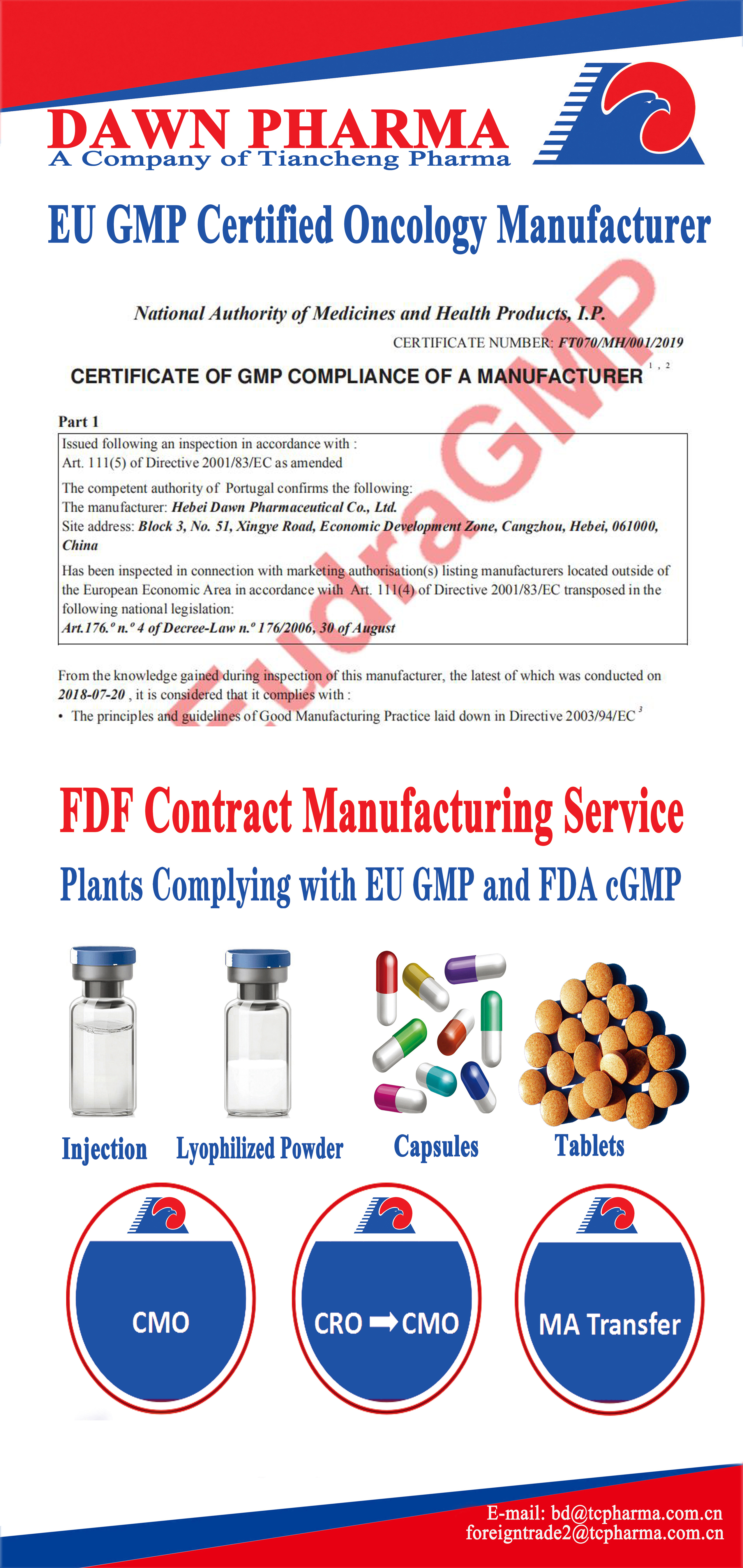 EU GMP Certified Oncology Manufacturer