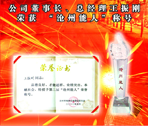 公司董事長(zhǎng)、總經(jīng)理王振剛榮獲 “滄州能人”稱號(hào)