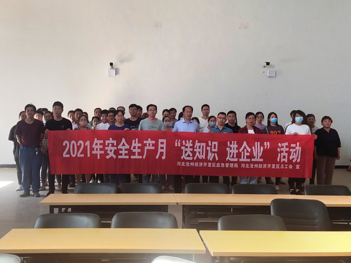 日前,滄州經濟開發區應急管理局聯合滄州經濟開發區總工會啟動了送“送知識 進企業”活動。6月17日上午,項目組來到公司三分廠培訓室開展活動。滄州經濟開發區應急管理局李延科長、滄州經濟開發區總工會工作人員賈起新出席活動,滄州渤海專修學院李振濤講師進行授課。