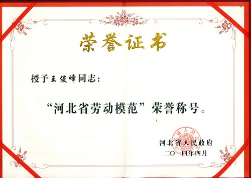 2014年4月榮獲“河北省勞動模范”榮譽(yù)稱號