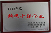 2014年榮獲“2013年度納稅十強企業” 榮譽稱號