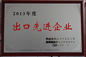 2014年榮獲“2013年度出口先進企業” 榮譽稱號